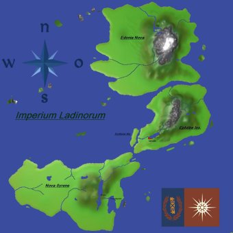 Das Reich von Ephèbe ist als Imperium Ladinorum aus einer ehemals westladinschen Kolonie, die vor 152 Jahren durch den Admiral Tiberius Apfelmus Schnellschuss endeckt wurde, hervorgegangen und hat im Westen die Inseln des alten Seereiches von Aquatropolis, sowie im Norden die zum Kaiserreich Dreibürgen gehörende Kolonie Ostland und südlich der eigenen Inseln die ebenfalls dreibürgische Kolonie der Nördlichen Inseln und das Attekarische Reich zu Nachbarn. (Sim-Off-Angabe: Auf der Karte der CEW grenzt das Reich an das Kaiserreich Drachenstein.
