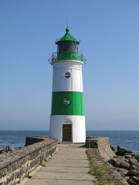 Mit dem Bau des mit gelben Backsteinen aus dem Südlichen Erzgebirge gemauerten Leuchtturm wurde 1885 begonnen. Im darauffolgenden Jahr wurde der 14 Meter hohe Leuchtturm in einer feierlichen Zeremonie durch den damaligen Bürgermeister Johann Klinkenborg eingeweiht. Das heutige Leuchtfeuer ist in bis zu einer Entfernung von 12 Seemeilen sichtbar.