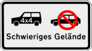 | 20:14, 27. Dez. 2014 | VzFSBZZAllrad.svg (Datei) | 49 KB | Fuchsisches Verkehrszeichen "Schwieriges Gelände - nur mit Allradantrieb" | 1 | |