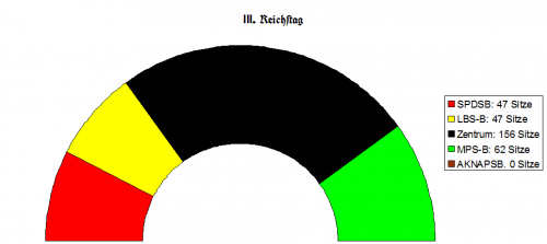 Der dritte Reichstag wurde von einer Koalition aus dem kat. Zentrum und der MPS-B Regiert. Am 15.03.2015 wurde der dritte Reichstag durch den Reichsrat mit 4 zu einer Stimme aufgelöst.