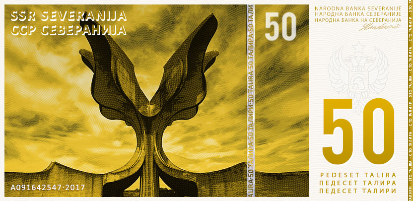 Banknote der Nationalbank der Sozialistischen Bundesrepublik Severanien Novčanice Narodne Banke Socialističke Savezne Republike Severanije