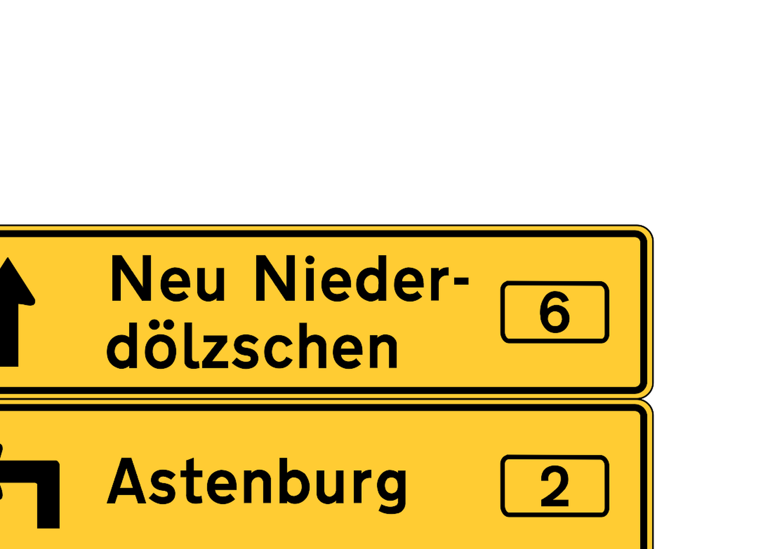 Fuchsisches Verkehrszeichen "Vorausliegende Zielorte mit Straßennummern"