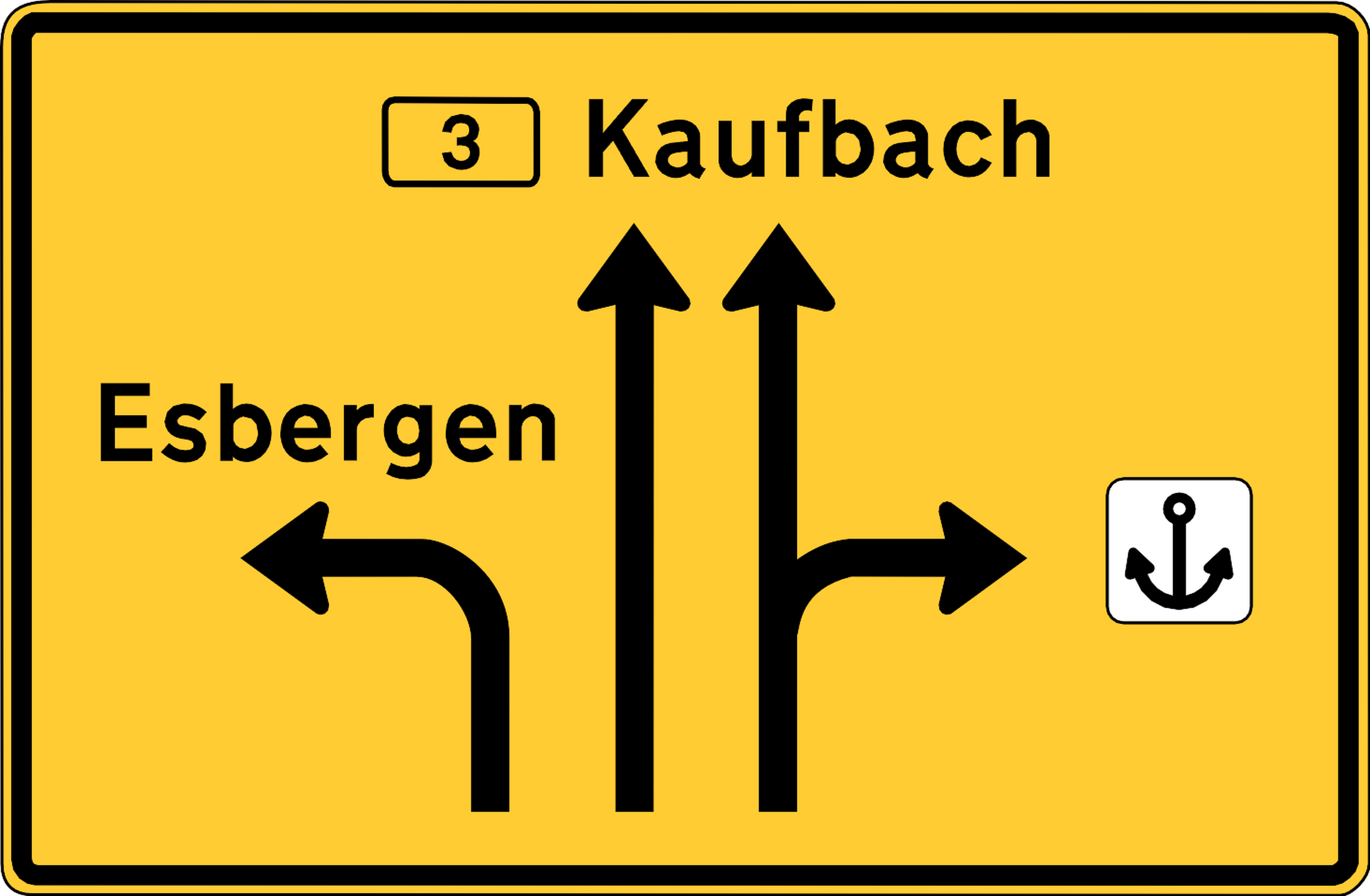 Fuchsisches Verkehrszeichen "gegliederter Vorwegweiser"