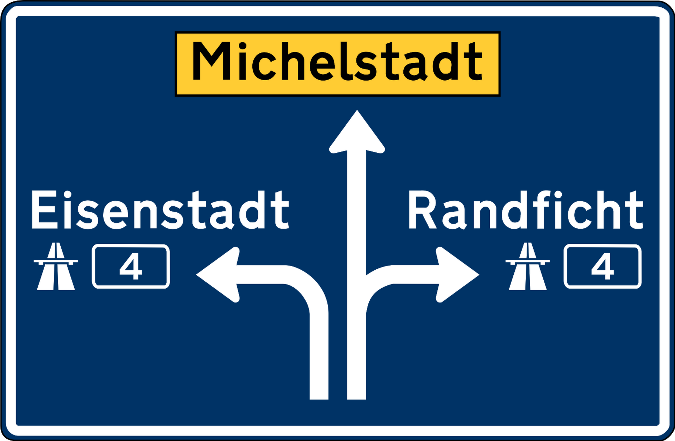 Fuchsisches Verkehrszeichen "gegliederter Wegweiser (Autobahn)