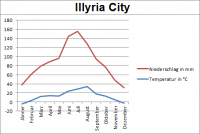 Wegen der niedrigen Lage der Stadt, ist die Möglichkeit der Inversionswetterlage sehr gering, daher ist Illyria City selten mit Smog oder hohen Feinstaubbelastungen belastet.