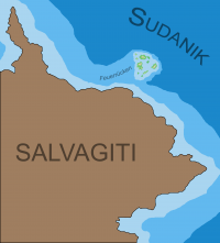 Die Inseln gehören topografisch zum Kontinent Salvagiti und bilden ein Atoll am Rande des salvagitianischen Kontinentalschelfs. Dieser Ausläufer des Kontinents wird als der "Feuerrücken" bezeichnet. Die Inseln sind ca. 7.300 km (Luftlinie) vom Reichsgebiet entfernt.