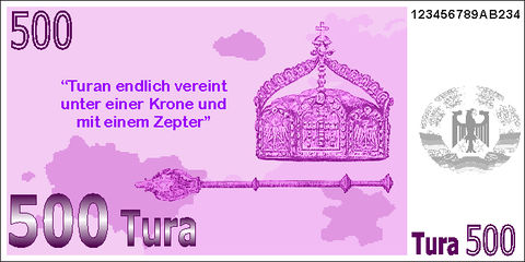 500 Tura - Vorderseite Großturanisches Tor in Turan (Großturanien) - Rückseite: Insignien des Turanischen Kaiserreiches