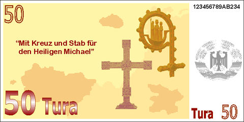 50 Tura - Vorderseite: St. Michaels-Kloster auf Rungholm (Westturanien) - Rückseite: Christliche Insignien das St.-Michaels-Klosters